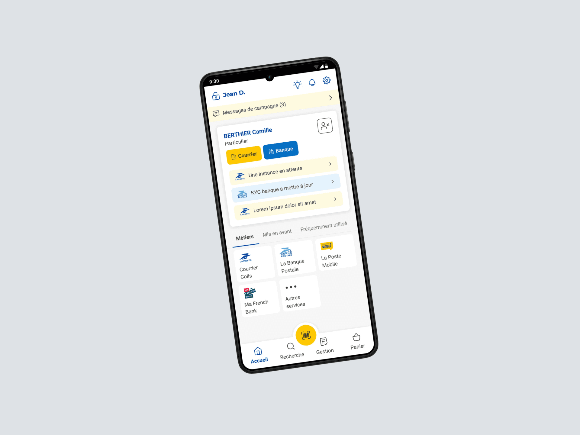 I was and still am part of the team in charge of the construction of a unified design system for La Poste’s post office devices, which include desktop computers for employees, Android phones for mobile operations, and touchscreens used by customers. Previously, each device had its own distinct set of buttons, colors, and components, resulting in inconsistent experiences. The goal was to harmonize the UI and UX across all three platforms while respecting La Poste’s brand guidelines. We aimed to create interfaces that not only felt visually cohesive but also light, native, and immediately familiar to users, ensuring a smoother and more intuitive interaction across the entire ecosystem.